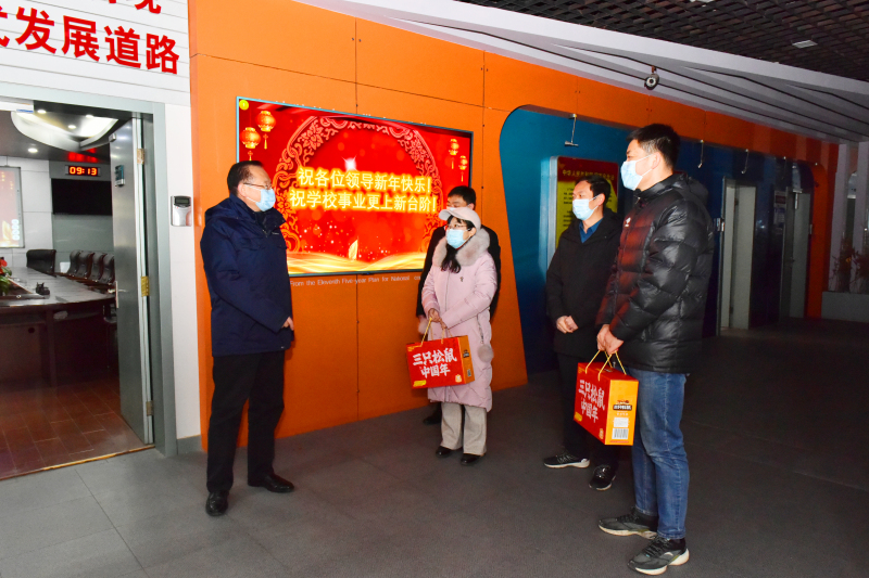 罗公利、曾庆田一行先后来到南门值班室、教学楼值班室、网络安全与信息化办公室、图书信息中心工地、留学生公寓、中心变电站、中心换热站、学者餐厅、校医院、山海花园大门值班室等看望慰问在岗职工。每到一处,罗公利、曾庆田等都热情地向值班人员表达节日的问候和新春的祝福,对他们为保证校园安全、让全校教职员工度过一个祥和幸福的春节而放弃节假日坚守工作岗位表示感谢,叮嘱他们要注意安全,安排好春节期间的工作和生活。