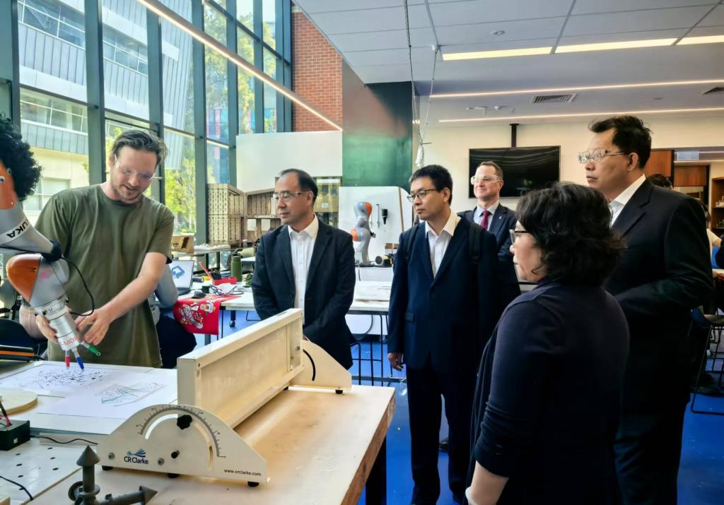 在斯威本科技大学,校长Pascale Quester、科研常务副校长Karen Hapgood、对外事务常务副校长Bronte Neyland以及国际事务副校长Douglas Proctor等人热情接待了代表团一行。双方对过去四年来合作举办斯威本学院取得的成果给予了充分肯定,深入探讨了斯威本学院围绕智能制造和商科领域进行专业优化调整的计划并达成了共识,同时表示双方将密切配合、建立工作协调机制,做好迎接明年教育部中外合作办学评估的准备。此外,双方还共同探讨了在空间安全、新能源、防灾减灾、结构工程、新材料、3D打印和产品设计等领域开展科研合作、博硕士联合培养的可能性并就下一步落实合作模式和合作专业达成一致。访问期间,代表团一行还与我校在斯威本科技大学学习的学生和教师进行座谈。代表团还在工学院院长Emad Gad的陪同下实地访问了斯威本科技大学的结构工程、工业设计和3D打印实验室。