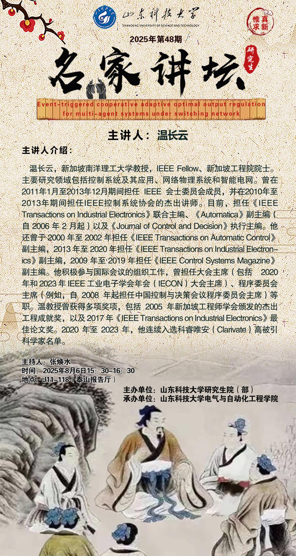 “名家讲坛”2025年第48期:Event-triggered cooperative adaptive optimal output regulation for multi-agent systems under switching network(总1053期)-日韩人妻无码一区二区三区久久99_日韩精品一区二区三区中文在线_无码日韩精品一区二区免费_久久久91精品国产一区二区三区_亚洲精品久久久一区黄无码_国产91精品一区二区麻豆网站_成人国内精品久久久久影院